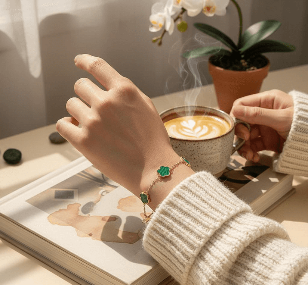 • Avoid wearing it after using lotion or cream, as the chemicals can harm the jewellery.