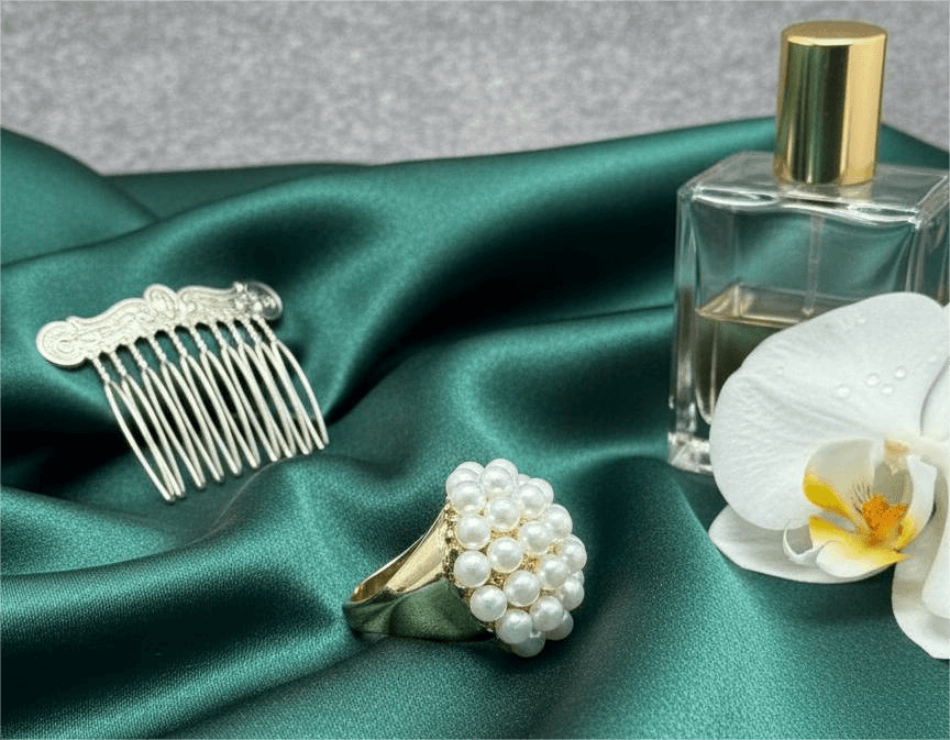 Don’t spray perfume directly on the jewellery. It’s best to wear perfume first, then put on your jewellery.